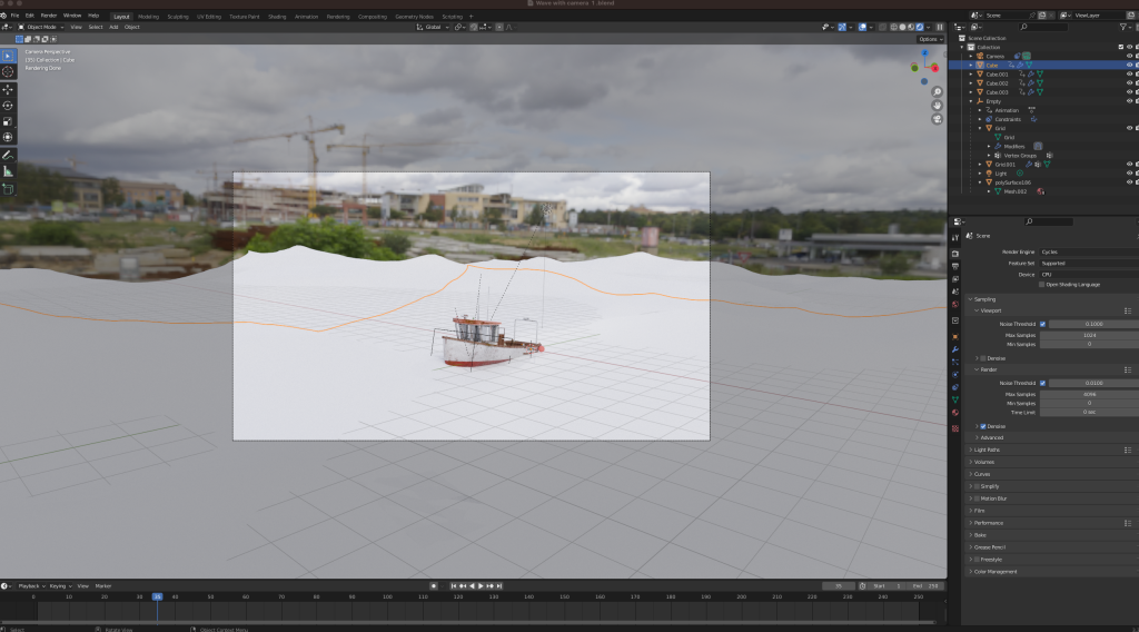 Now that both the camera and boat are attached to the square grids they will move consistently